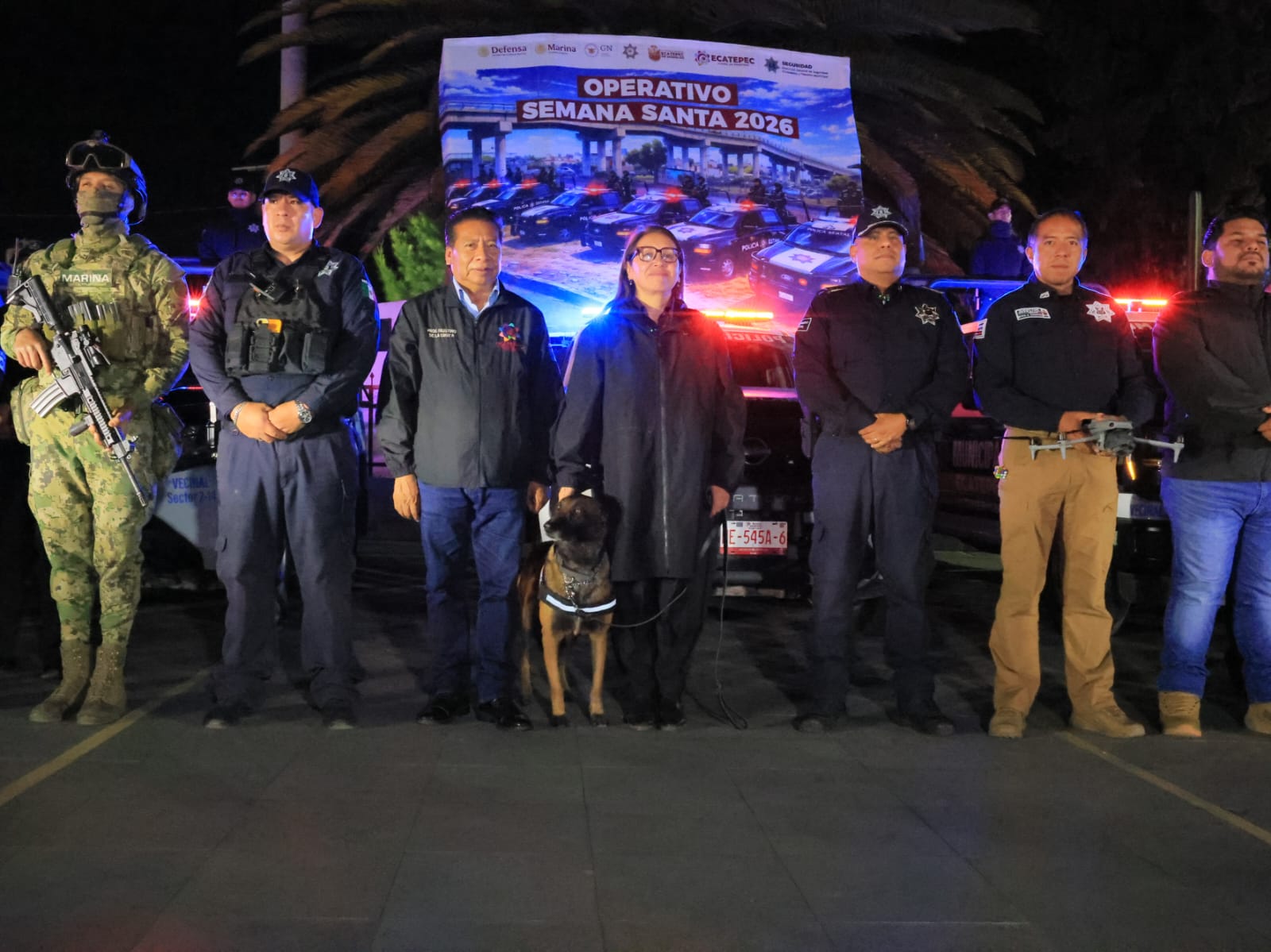 Ecatepec, Méx., a 29 de marzo de 2026. Con el despliegue de mil 200 elementos y 495 patrullas, la presidenta municipal Azucena Cisneros Coss dio el banderazo de salida del Operativo Semana Santa, que se realiza del 29 de marzo al 05 de abril, para prevenir delitos de alto impacto en las comunidades, además de resguardar las celebraciones religiosas en 118 iglesias del municipio.