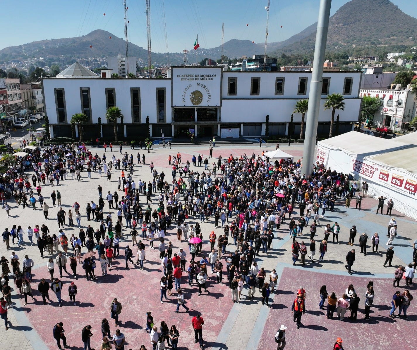 Jesús Clara González, director de Protección Civil y Bomberos de Ecatepec, informó que evacuaron mil 960 personas del palacio municipal en un minuto con 58 segundos, lo que consideró como favorable, ejercicio que incluyó el sistema de alertamiento temprano con videocámaras y brigadas organizadas.