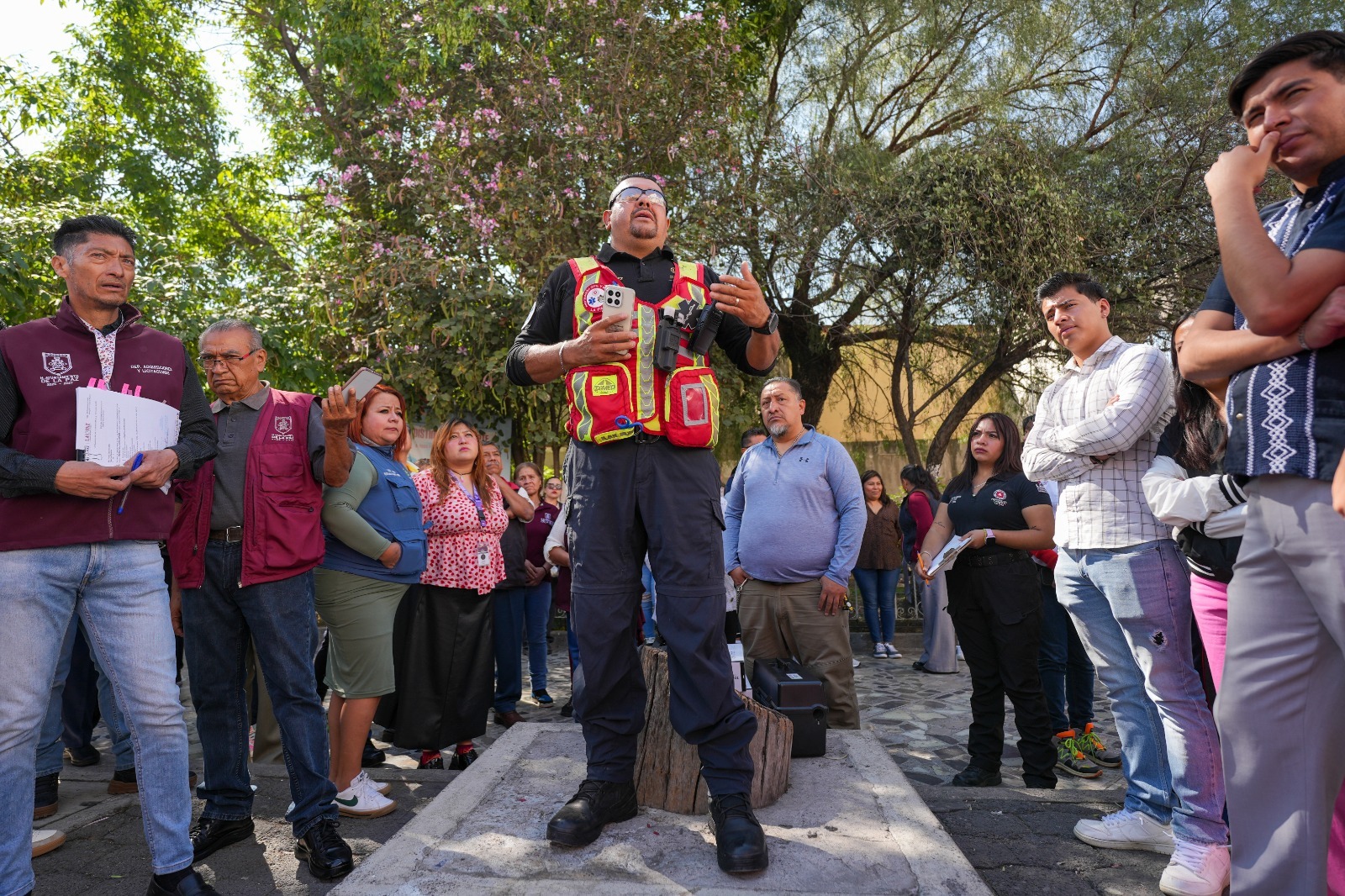 El ejercicio de prevención se realizó en 26 edificios administrativos municipales, entre ellos el C4, donde la presidenta municipal, Xóchitl Flores Jiménez, siguió el protocolo con responsabilidad y orden, “llamo a la población a participar en estos simulacros, tomarlos en serio y seguir las instrucciones de Protección Civil y Bomberos ante cualquier emergencia”. En el simulacro participaron brigadas de Primeros Auxilios, Búsqueda y Rescate, Evacuación y de Prevención y Control de Incendios, quienes deben actuar a la brevedad en caso de un movimiento telúrico real.